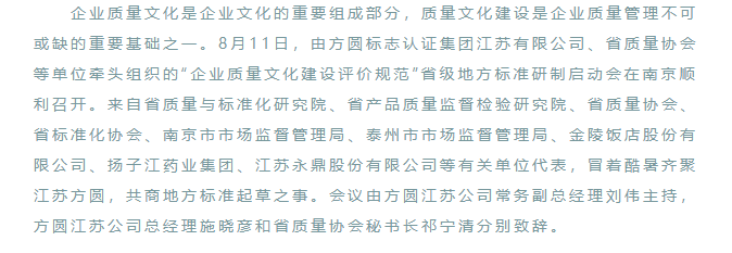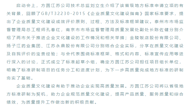 “企業(yè)質(zhì)量文化建設評價規(guī)范”省級地方標準研制啟動會在南京順利召開